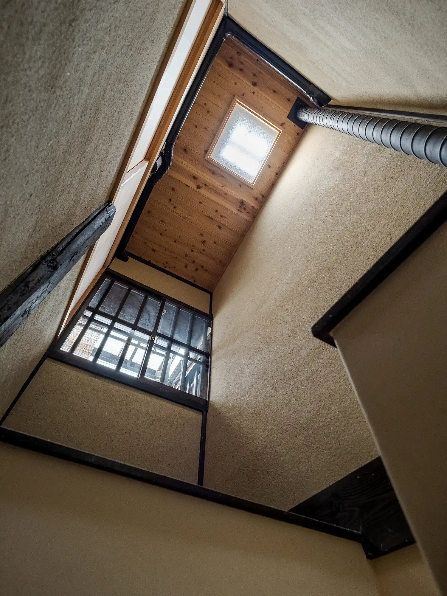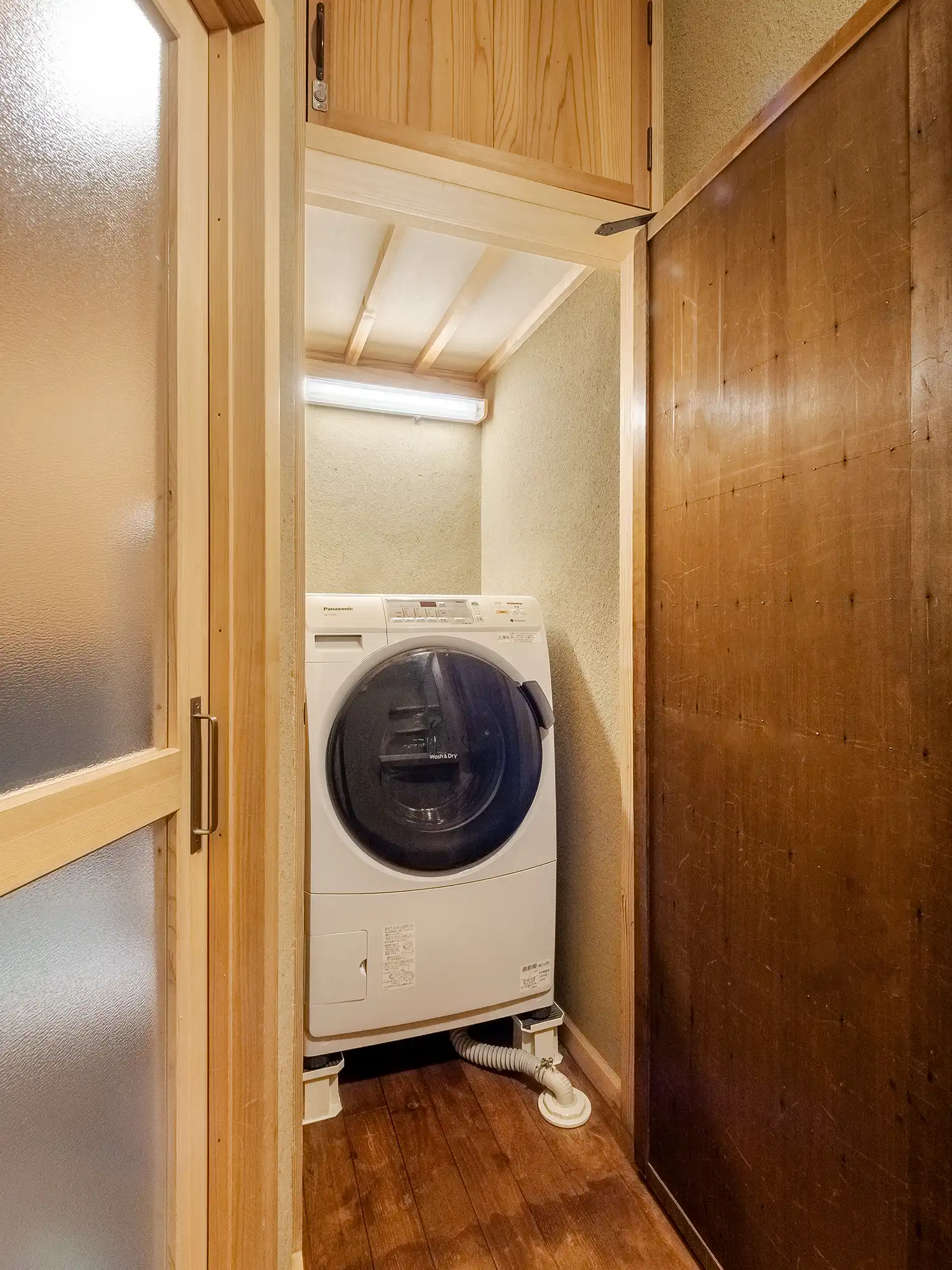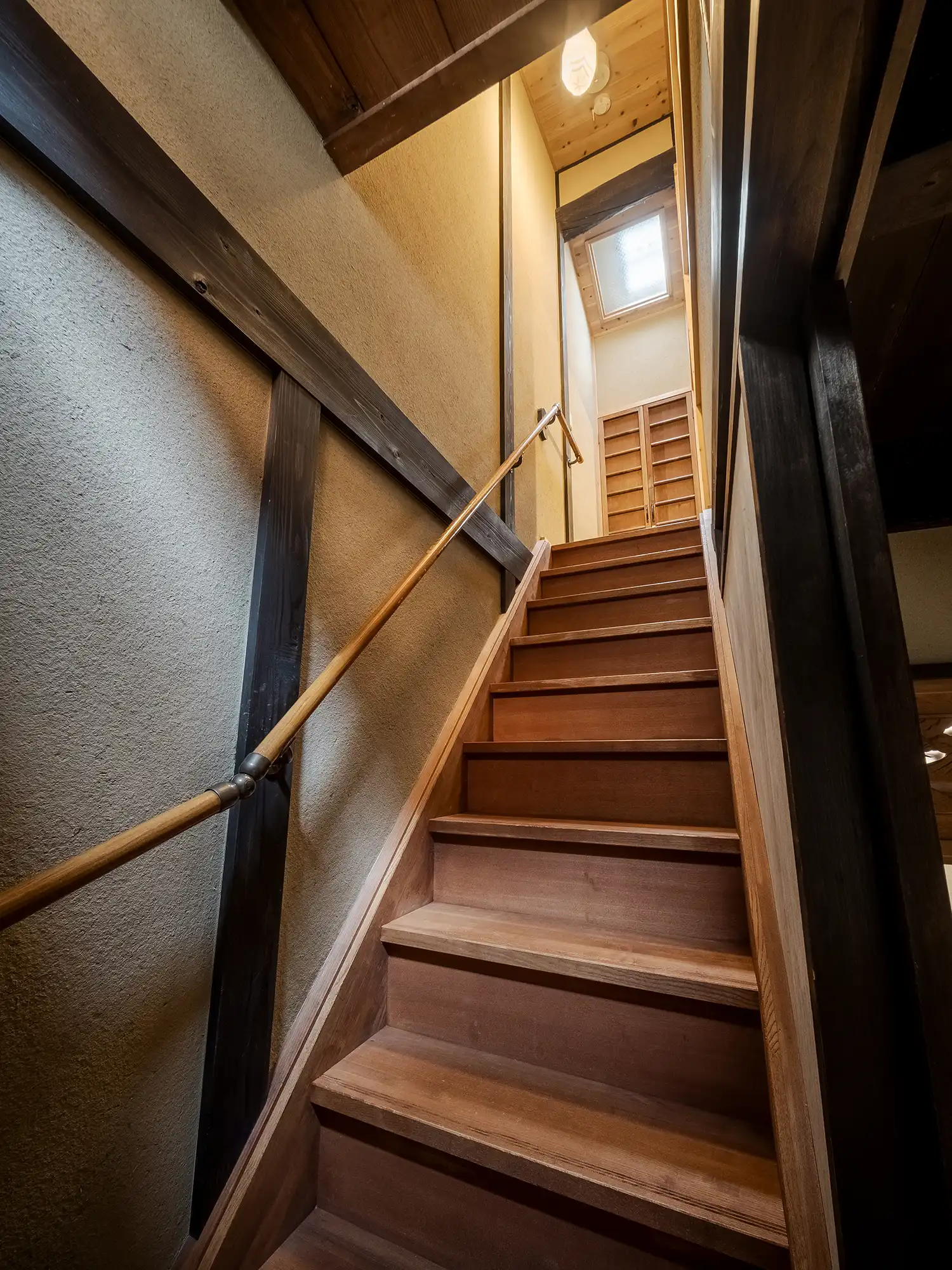 Head upstairs where you will find 2 rooms. The Western-style bedroom showcases wooden beam stretching across the ceiling, while the cozy Japanese room includes a small veranda. This renovated Kyoto machiya house also includes modern facilities such as floor heating, WiFi, IH stovetop, washing machine, and more.