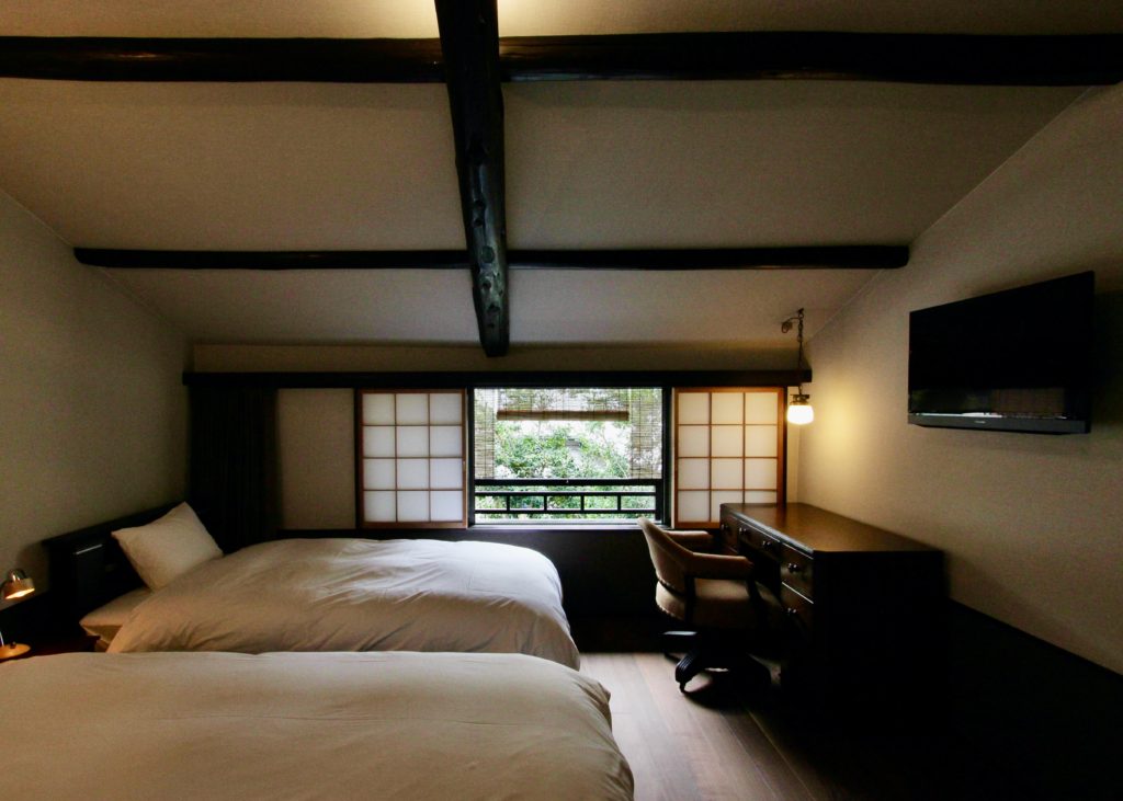 建築と組み合わせて作られた昔ながらの日本庭園は、そのほとんどが建物の中で座って見た時が一番美しくみえるように設計されています。町家の一番奥にあるこの部屋はかつて大事なお客様をもてなすための部屋で、座敷に座りながら一番良い庭の景色を楽しむことができます。