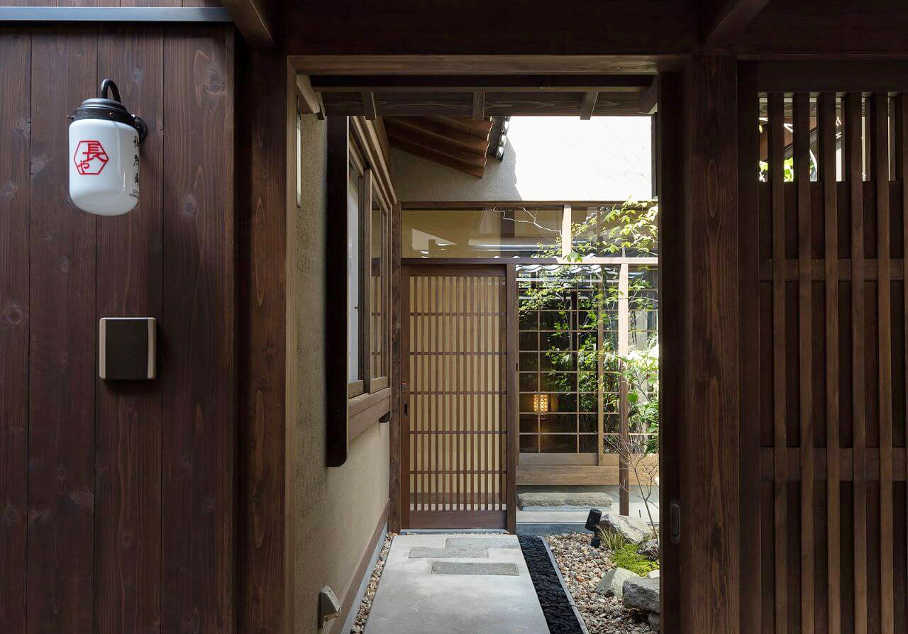 玄関から奥の坪庭まで土間が続く「通り庭」には、吹き抜けの空間「火袋(ひぶくろ)」が設けられ、空気の流れを生み出しています。また奥の坪庭から入る風が家の中に入り、自然な通気が保たれます。