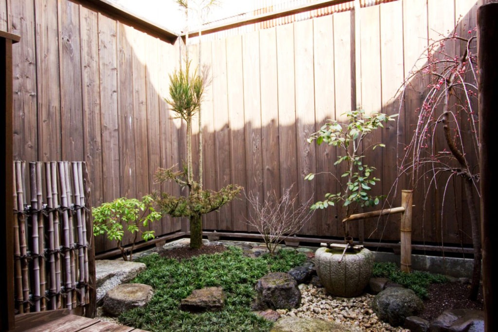 手水鉢のある坪庭、そして町家を彩る色から、日本の文化と歴史を感じるひとときをお過ごしください。